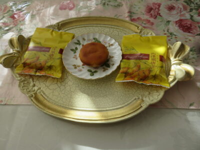博多大丸のフェスティバロのお店に唐芋ケーキを買うために寄って、チーズが入ってる焼き菓子を見つけてこちらも買ってきてくれたそうです。大好物のフェスティバロは来月のおやつに登場予定です。