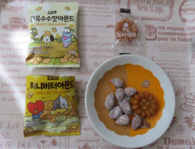 LINE FRIENDSにも行かれてBT21の「BAKED CORN ALMOND」も可愛いイラスト付きで美味しかったです。